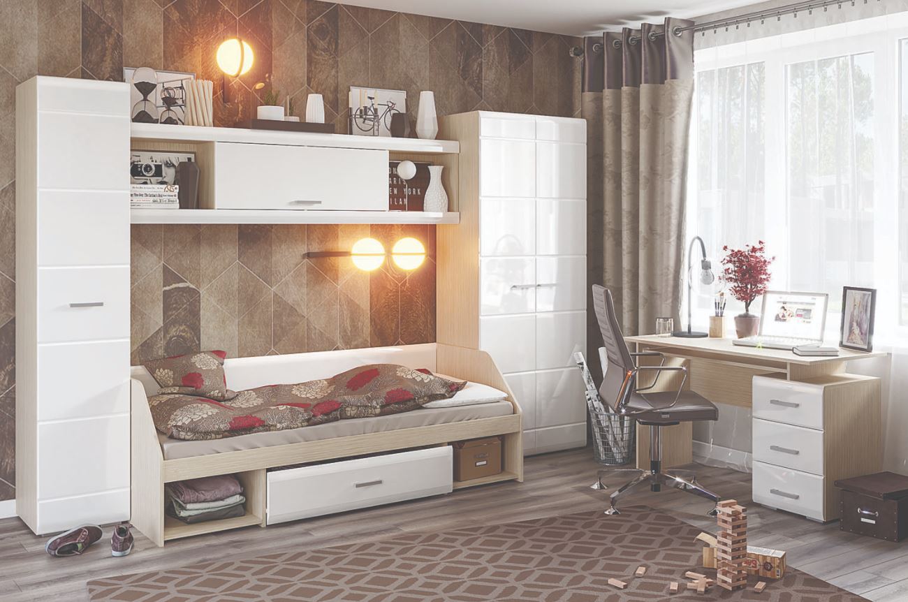 Модульная детская Симба (Дуб белфорт/Белый глянец)