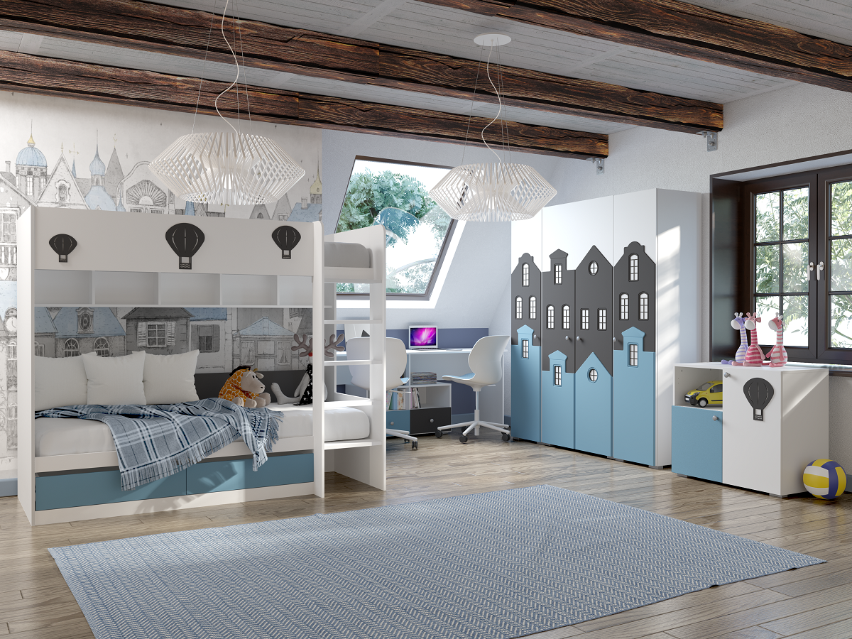 В серии представлен большой выбор кроватей, который поможет обустроить комнату как для одного, так и для нескольких детишек.