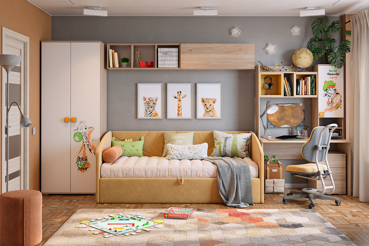 Модульная детская мебель Зоо - это позитивная и яркая коллекция, которая подходит, как для мальчиков, так и для девочек за счёт универсального принтерного рисунка. Модный и стильный рисунок на фасадах и яркая ручка, придадут индивидуальность детской комнате. Принтерный рисунок устойчив к истиранию и ультрафиолету. Цветовое сочетание и позитивные надписи благотворно влияют на нежную психику ребенку.