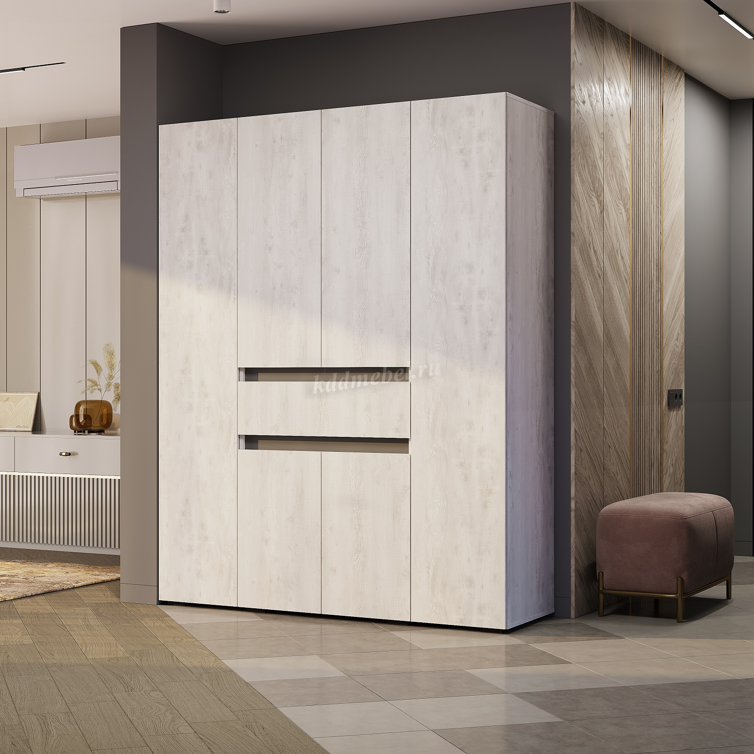 Шкаф Мрия 4-х створчатый (Бетон пайн светлый/Графит) наличие товара: