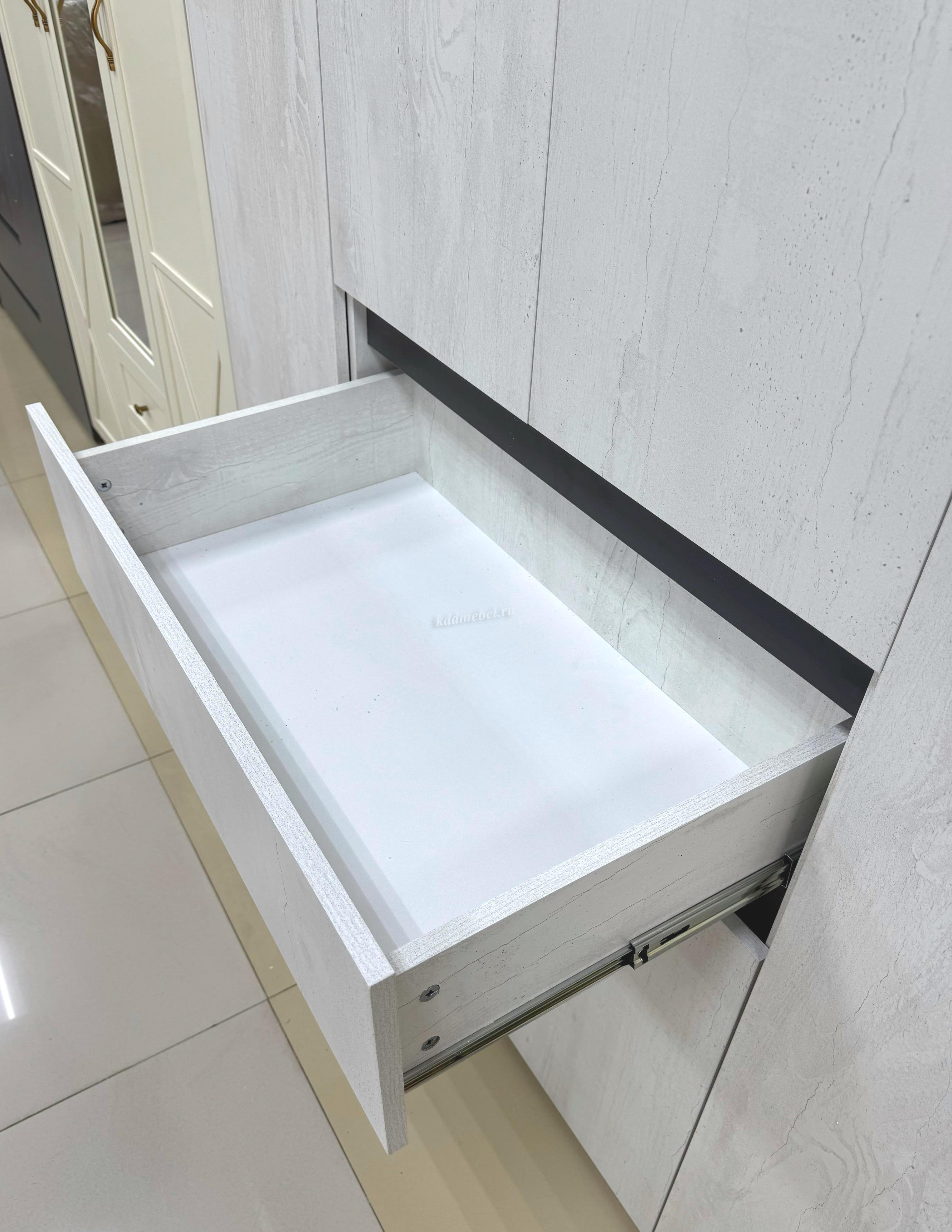 Коллекция «Мрия» — это органичное сочетание классических и современных элементов в дизайне мебели. Оттенки «бетон пайн светлый» и «графит» создают красивый контраст, который привнесет гармонию в интерьер. Однотонные горизонтальные геометрические вставки придают многослойность коллекции.